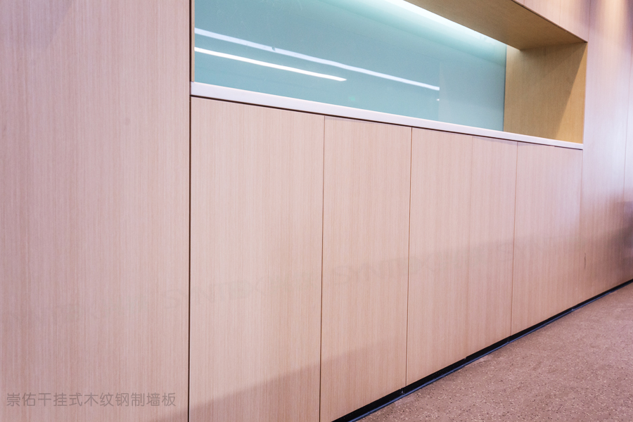 (木紋色鋼制復合墻板作為背景墻隔斷使用)